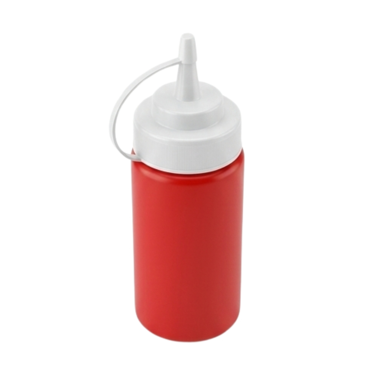 Fabricado en material plástico resistente, este salsero ofrece una estructura flexible que facilita la salida del contenido al presionarlo suavemente. Su tapa superior cuenta con una boquilla estrecha que permite dirigir el flujo de la salsa con mayor precisión, ayudando a evitar derrames y desperdicios. Además, incluye una tapa protectora unida que mantiene la boquilla cubierta cuando no está en uso, contribuyendo a una mejor higiene.